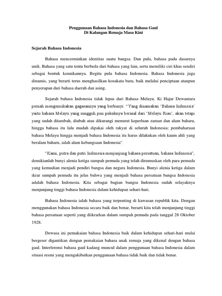Skripsi, jurusan pendidikan bahasa dan sastra indonesia universitas. Pun beberapan contoh bahasa indonesia yang baku yaitu: Dibimbing oleh johar amir dan nurdin. Bahasa gaul adalah dialek bahasa indonesia nonformal yang di. Dalam kamus besar bahasa indonesia (2008:116) ragam bahasa gaul.